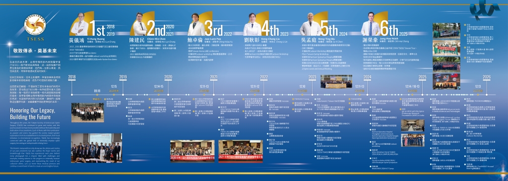 於2018/09/08政府核准立案並且正式成立,首屆創會理事長黃儀鴻理事長帶領包括骨科、神經外科以及疼痛科等多位於脊椎內視鏡有著專業領域的醫師們,共同組成的醫學會團體,主要的目標在台灣為推廣內視鏡醫療技術,讓病患得到最佳的手術治療保留最多的脊椎穩定結構,減少不必要的脊椎融合手術,並且讓有熱誠想學習想交流想技術提升的同好醫師們,藉著醫學會的力量,透過會議及教育學習班的舉辦,讓更多的新手醫師更能夠駕輕就熟的操作脊椎內視鏡手術,及減少手術併發症的發生,促進病患安全。在國外,不僅參與國際間脊椎內視鏡相關的醫學會,我們舉辦國際脊椎內視鏡手術高峰研討會,讓醫療與世界接軌,創造更多國際交流的契機,期許推升台灣脊椎微創內視鏡醫學會在國際上的地位與影響力。