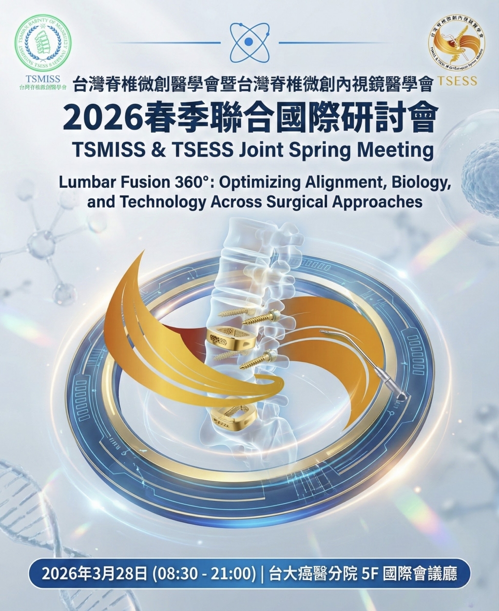 本次會議以「Lumbar Fusion 360°: Optimizing Alignment, Biology, and Technology Across Surgical Approaches」為主題,邀集國內外專家進行深入交流與臨床經驗分享,誠摯邀請各位醫師踴躍參與。